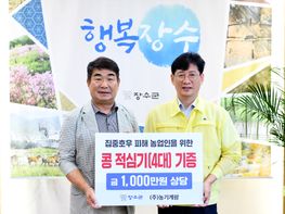장수군은 23일 농업 및 임업용기계 제조업체인 농기계팜(대표 조경아)으로부터 지속된 호우와 태풍으로 인해 피해를 입은 논콩재배농가들을 위해 써달라며 1000만원 상당의 콩 적심기 4대를 기증받았다고 밝혔다. 이...