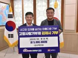 성광산업 황천택 대표는 24일 김제시를 방문하여 고향사랑기부로 최고액인 500만 원을 기탁하였다. 김제시 용지면 구암리가 고향인 황대표는 각종 조경 및 교통 관련 시설물 등을 직접 생산 및 설치하는 전문기업을 ...