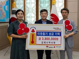 김제시약사회(회장 박환철, 정기만 재정이사)는 18일 김제시를 찾아 노인복지센터 어르신들의 건강 유지를 위한 의약품 구입에 써 달라며 380만 원의 성금을 기탁했다. 2022년 100만 원의 성금 기탁으로 관내...