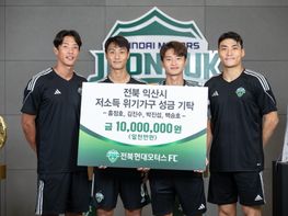 전북현대모터스FC(대표이사 허병길)는 11일 익산시청을 방문해 저소득 위기가구를 위해 성금 1,000만 원을 기탁했다. 후원된 성금은 최근 폭우로 인해 갑작스러운 위기 상황이 발생에 피해를 입은 저소득 가구의 ...