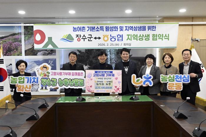 장수군은 NH농협 장수군지부(지부장 정현주), 장수농협(조합장 김용준), 장계농협(조합장 곽점용) 등 장수지역 농협 임직원들이 고향사랑기부금 2,010만 원을 기탁했다고 2일 밝혔다.이번 기탁은 올해 부임…