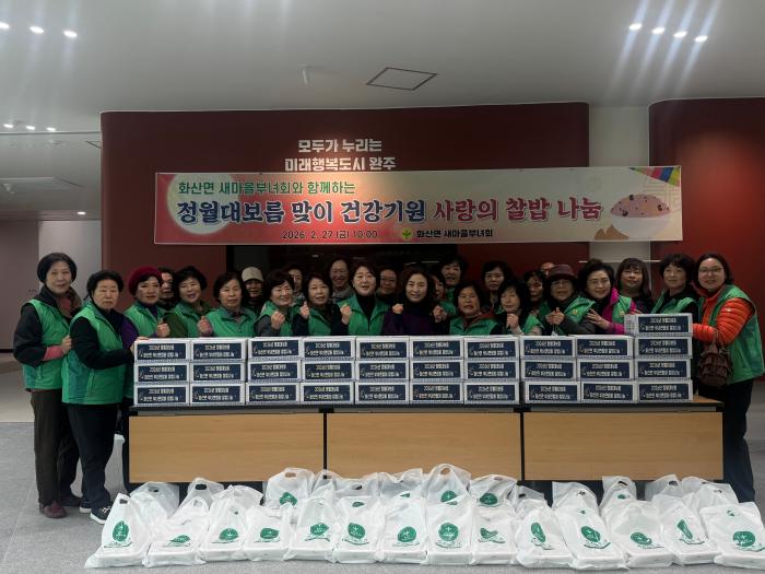 완주군 화산면 새마을부녀회가 정월대보름을 맞아 지역 어르신들의 건강을 기원하기 위해 사랑의 찰밥 나눔 행사를 열었다.화산면 새마을부녀회원들은 최근 화산면 행정복지센터에 모여 완주 와일드앤로컬푸…