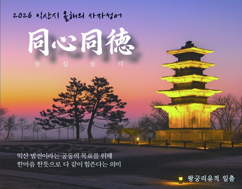익산시는 2026년 시정 운영의 핵심 철학을 담은 사자성어로 '동심동덕(同心同德)'을 선정했다.'동심동덕(同心同德)'은 '같은 마음으로 같은 뜻을 이룬다'는 의미로, 시정의 중심에 시민을 두고 함께 생각하…