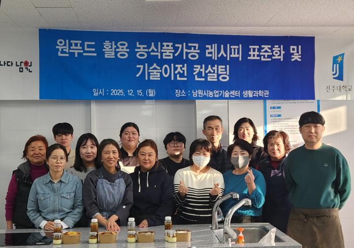 남원시농업기술센터(소장 김연주)는 지난 12월 15일 ‘원푸드 농식품가공 기술이전 교육’을 추진하여 지역 농식품산업 경쟁력 강화를 위한 기술 실용화 보급에 나섰다.이번 교육은 지역 농특산물 기반 가공…