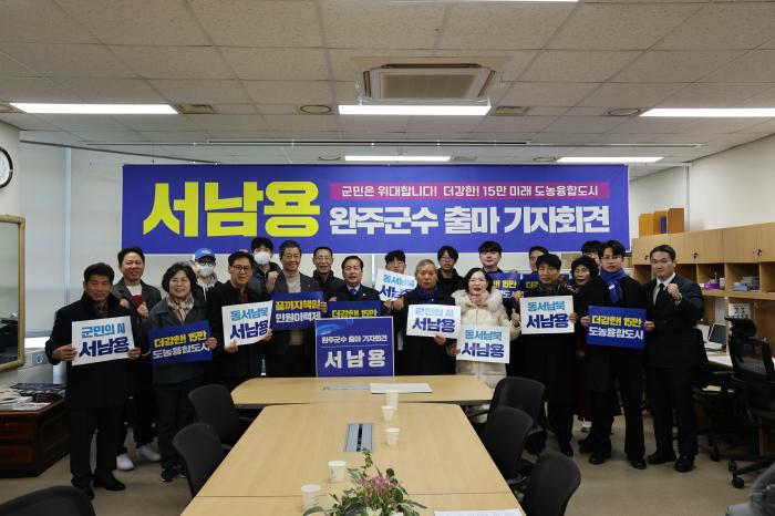 서남용 전 완주군의회 의장(더불어민주당 정책위원회 부의장)이 22일 완주군청 브리핑룸에서 기자회견을 통해 2026년 6·3 지방선거 완주군수 출마를 공식 선언했다.서 출마자는 이날 기자회견에서 “완주는…