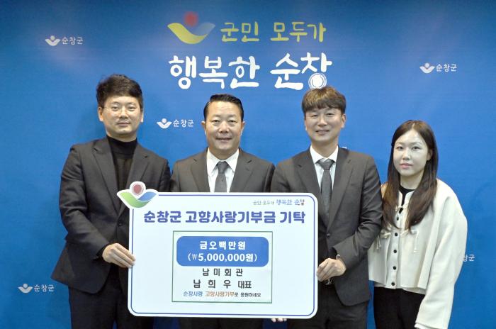 순창군은 18일 정읍 소재 남미회관 남희우 대표가 순창군에 고향사랑기부금 500만원을 기탁했다고 밝혔다.전북 정읍시에서 정육식당 ‘남미회관’을 운영 중인 남희우 대표는 부친인 남상국 순정축협 조합장…