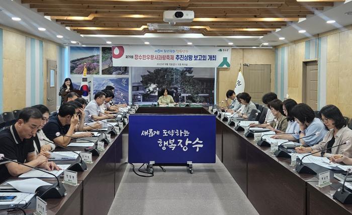 장수군은 ‘제19회 장수한우랑사과랑축제’의 성공적 개최를 위해 군청 회의실에서 이정우 부군수 주재로 추진상황보고회를 개최했다고 8일 밝혔다.이번 보고회는 축제 프로그램별 담당부서가 모두 참여해 …