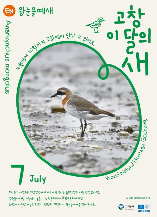 고창군이 7월 ‘고창갯벌 이달의 새’로 국제적 멸종위기종인 ‘왕눈물떼새(Anarhynchus mongolus)’를 선정하고, 생물다양성 보전과 생태 인식 확산을 위한 캠페인을 전개한다고 2일 밝혔다.왕눈물떼새는 …