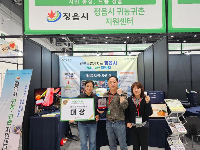 정읍시가 지난 14일부터 16일까지 3일간 경기도 수원시 수원메쎄에서 열린 ‘2025년 케이팜(K-Farm) 박람회’에 참가해 귀농귀촌 분야 대상을 수상하는 영예를 안았다.시는 이번 박람회에서 정책의 우수성과…