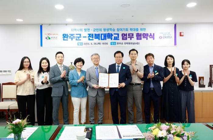 완주군이 전북대와 함께 정통 인문학과 디지털 기술이 융합된 콘텐츠를 지역 사회에 확산시킨다.26일 완주군과 전북대는 완주군청 4층 전략회의실에서 유희태 완주군수, 이존화 전북대학교 부총장, 이상현 …