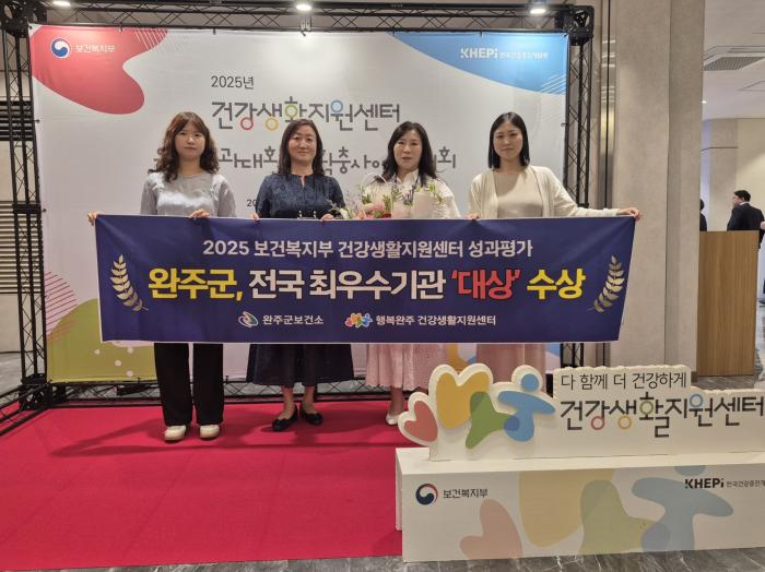 행복완주건강생활지원센터가 보건복지부가 주관한 ‘2025년 전국 건강생활지원센터 성과평가’에서 전국 1위인 최우수기관(대상)으로 선정됐다.25일 완주군에 따르면 이번 평가는 전국 102개 건강생활지원센…