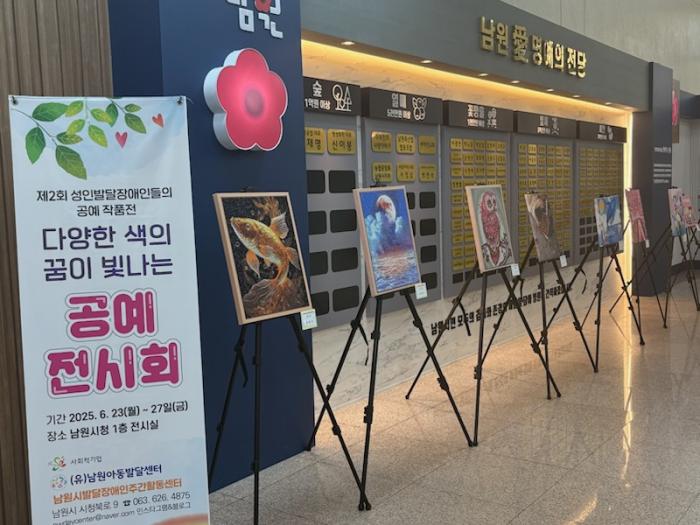 (유)남원아동발달센터 발달장애인들의 예술적 감성과 꾸준한 노력이 담긴 ‘보석 십자수 전시회’가 2025년 6월 23일(월)부터 2025년 6월 27일(금)까지 남원시청 1층 로비에서 열린다.이번 전시회는 주간활…