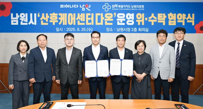 남원시(시장 최경식)는 산후조리원의 효율적인 운영과 활성화를 위하여 남원의료원과 ‘남원시 공공산후조리원 운영 위수탁 협약’을 2025년 6월 25일 시청 회의실에서 체결했다.이번 협약에 따라 남원의료…