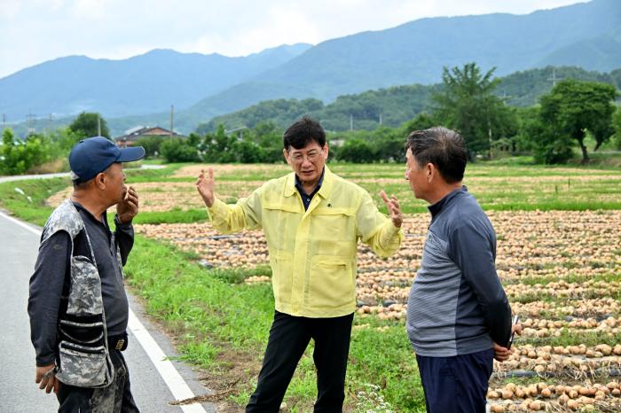 최훈식 장수군수는 25일 최근 본격적으로 고품질 양파를 출하 중인 산서면 소재 양파 농가를 방문해 현장을 점검하고 농가들을 격려했다.이번 방문은 잦은 호우와 인력 수급이 원활하지 않아 수확작업이 지…