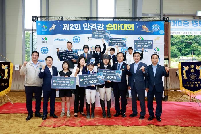 완주군에서 주관한 ‘제2회 만경강배 승마대회’가 선수와 관계자 등 300여 명과 말 100여 마리가 참여한 가운데 성황리에 마무리됐다.지난 20일부터 완주 공공승마장에서 이틀간 유소년부와 통합부로 개최…