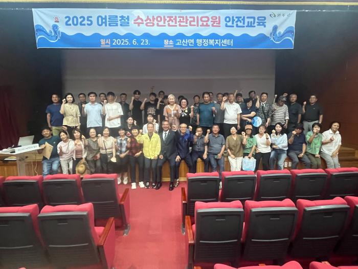 완주군이 본격적인 수상안전 특별대책기간에 앞서 물놀이 안전관리요원 안전교육을 실시했다.지난 23일 완주군은 고산면 행정복지센터에서 2025년 여름철 물놀이 관리·위험 구역에 배치될 안전관리요원 44…