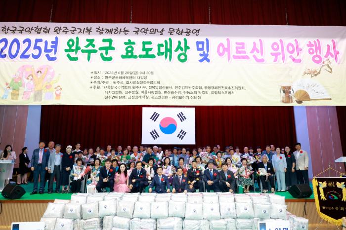 완주군이 주최하고 효사랑실천전북협의회가 주관한 ‘2025년 완주군 효도대상 시상식 및 어르신 위안행사’가 지난 20일 완주군문화체육센터에서 성료됐다.이날 행사는 경로효친 사상을 계승하고 어르신들의…