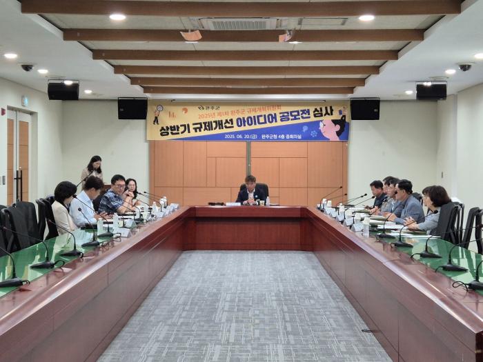 완주군이 군민 불편 해소를 위해 현장 중심의 규제혁신에 적극 나서고 있다.23일 완주군은 최근 2025년 완주군 규제개혁위원회를 열고, 상반기 규제개선 아이디어 공모전에서 1차 심사를 통과한 5건에 대한 …