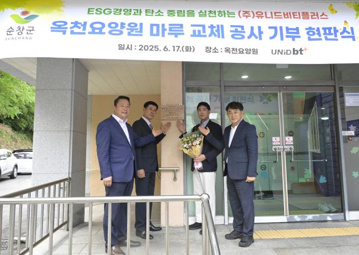옥천요양원(원장 박승순)은 지난 17일 ㈜유니드비티플러스(대표이사 한상준)의 후원으로 진행된 노후 마루 무상 교체 작업의 완료를 기념하며 현판식을 개최했다.이번 기부는 총 3,500만 원 상당으로, 시설 …