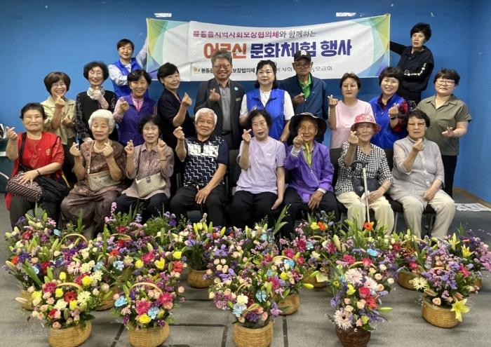완주군 봉동읍 지역사회보장협의체(공동위원장 국인숙, 윤당호)가 어르신 문화체험 일환으로 18일 봉동읍 행정복지 센터에서 20명의 저소득 어르신과 함께 꽃바구니 만들기 시간을 가졌다.어르신 문화체험은…
