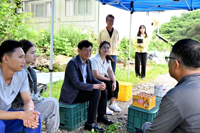 최훈식 장수군수는 외국인 계절근로자 프로그램을 통해 지난달 입국한 외국인 근로자들을 격려하기 위해 17일 장수읍 시금치·상추 농가와 계남면 토마토 재배 농가를 방문했다.이번 방문은 근로한 지 1개월…