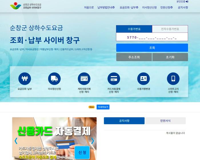 순창군이 상·하수도 요금 납부를 위한 실시간 납부 시스템을 구축해 다음 달 1일부터 서비스를 시행한다고 밝혔다.이번 시스템 도입은 금융기관 방문이나 상하수도과를 직접 방문하는 등 군민들의 불편을 …