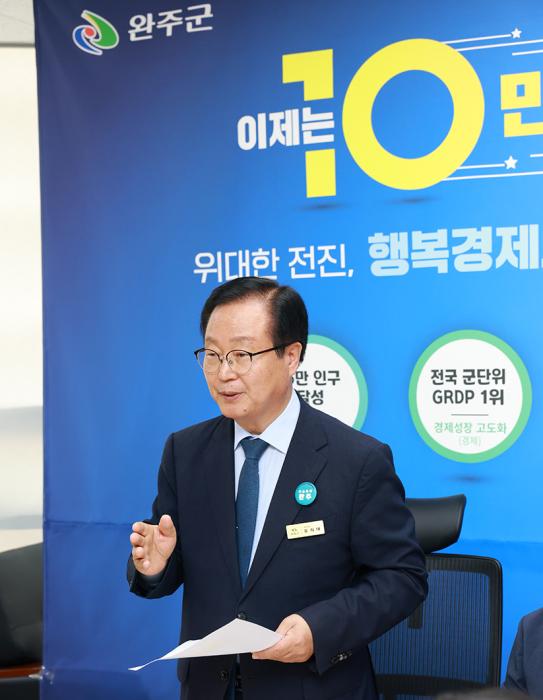 27일 유군수 기자회견완주군의 인구 10만명 돌파는 여러가지 측면에서 중요한 의미를 보여주고 있다.특히 이번 10만명 달성은 완주군의 자립 의지에 희망적인 메시지를 던져 주고 있어 최근 완주-전주 통합 …