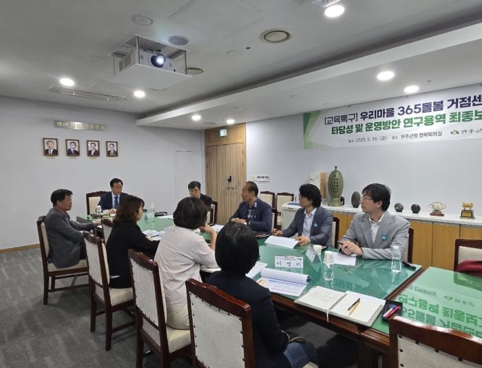 완주군 체계적인 아동돌봄을 위해 거점센터 설립을 추진한다.군은 최근 군청 전략회의실에서 ‘우리마을 365돌봄 거점센터 조성 타당성 및 운영방안 연구용역’ 최종보고회를 개최했다.이번 연구용역은 교육…