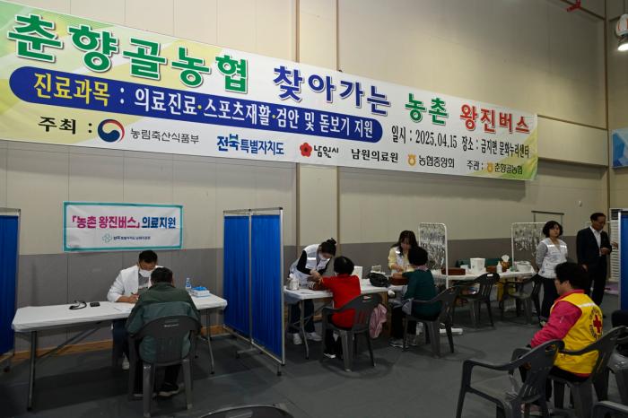 남원시는 4월 15일 금지문화누리센터에서 2025년 남원시 농촌 왕진버스를 운영하여 지역 고령 농업인을 위한 의료서비스를 제공하였다. 농촌 왕진버스 사업은 의료가 취약한 농촌지역에 거주하는 주민을 대…