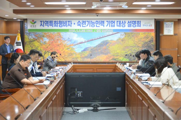 순창군은 9일 군청 2층 영상회의실에서‘지역특화형 비자·숙련기능인력 찾아가는 기업 설명회’를 성공적으로 개최했다.이번 설명회는 지역특화형 비자와 숙련기능인력 전북자치도 추천 대상자를 모집하기 …