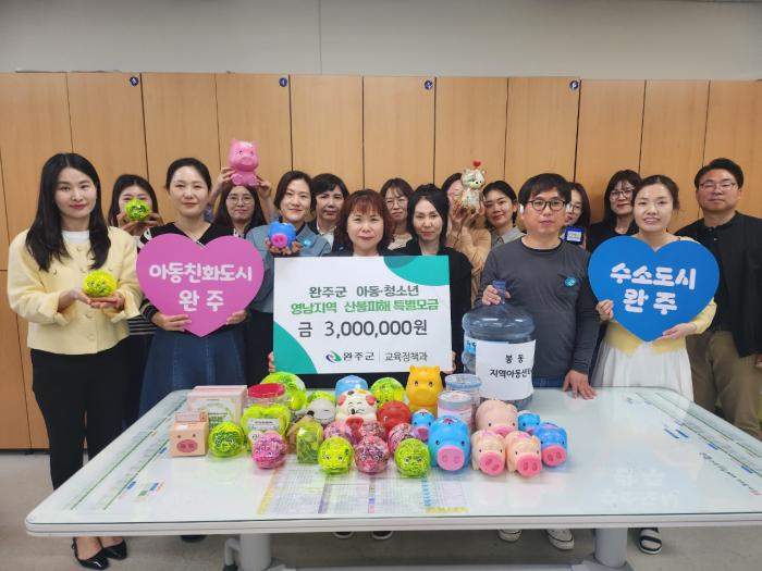 완주군 아동 청소년들이 산불 피해를 입은 영남지역을 돕기 위해 특별모금 캠페인을 벌였다.8일 완주군은 지역아동센터, 다함께돌봄센터, 아동생활시설, 청소년센터 등의 시설 이용 아동들이 자신의 용돈을 …