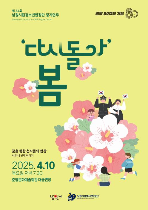남원시립청소년합창단(예술감독 김종희)이 오는 10일 오후 7시 30분, 춘향문화예술회관에서 제34회 정기연주회 를 개최한다. 이번 공연에서는 청소년합창단이 봄의 따뜻한 감성을 담은 합창곡과 함께, 독립…