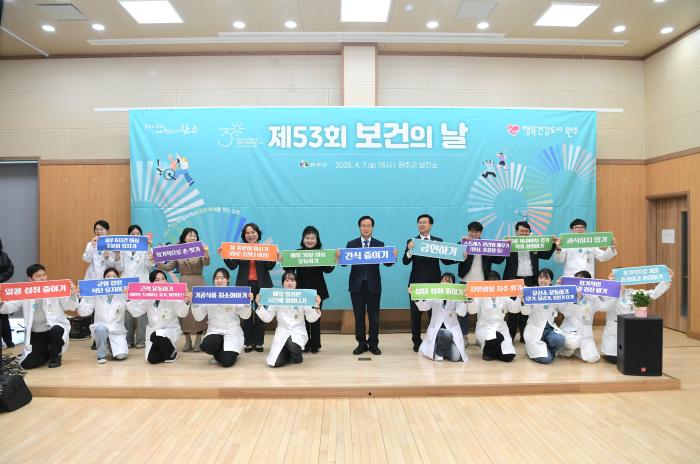 완주군이 7일 보건의날을 맞아 보건소 3층 강당에서 지역내 보건 의료분야 유공자 등 150여 명이 참석한 가운데 ‘제53회 보건의날’ 기념행사를 가졌다.행사에는 유희태 완주군수, 유의식 군의회 의장도 참…