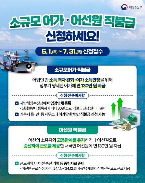군산시가 올해 ‘수산 공익직불제’ 신청·접수를 어촌 소재지 읍면동 사무소(행정복지센터)에서 7월31일까지 받는다.수산 공익직불제는 어업인의 소득을 안정시키고 수산업과 어촌의 공익기능을 높이기 위…