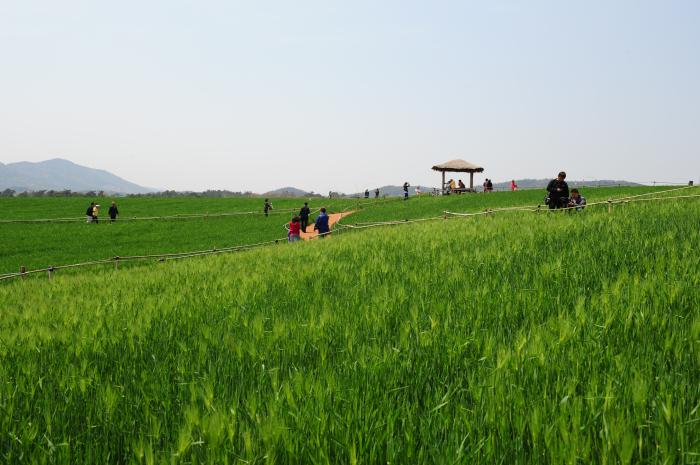 고창청보리밭축제장은 지금 청보리가 겨우내 얼어있던 대지를 녹이고 초록빛 얼굴을 내밀고 있다. 30만평의 광활한 대지에 초록빛으로 물들인 청보리가 관광객을 향해 손짓하고 있다.대한민국 대표 경관농업…