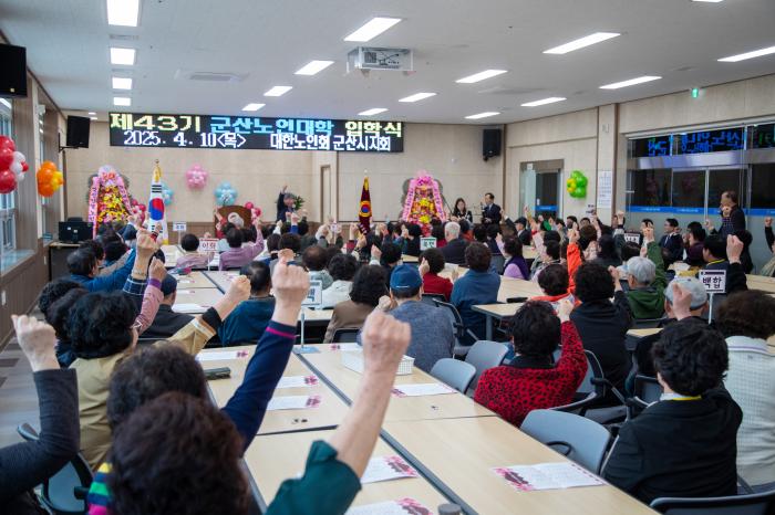 대한노인회 군산시지회가 주최한 ‘2025년 제43회 노인대학 입학식’이 10일 개최됐다.군산시 노인회관 3층 대강당에서 열린 행사는 시립교향악단의 피아노 트리오 공연으로 문을 열었다. 이어 조성돈 노인…