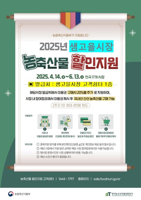 정읍 샘고을시장에서 오는 14일부터 6월까지 국산 농축산물을 최대 20% 할인된 가격에 구매할 수 있는 특별행사를 진행한다.이번 행사는 소비자의 장바구니 물가 부담을 덜고 전통시장 이용을 장려하기 위한…