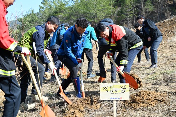 장수군은 21일 장수읍 선창리 산51 일원에서 제80회 식목일 기념행사 및 산불예방 홍보활동을 펼쳤다.최훈식 군수를 비롯한 공무원 등 250여 명이 참여한 가운데 진행된 이날 행사는 지구온난화로 인한 기온…