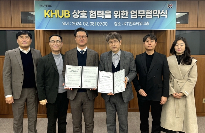 KT 전남전북광역본부(본부장 지정용 전무)가 소셜 기반의 포털형 LMS(Learning Management System, 학습관리시스템) 전문기업인 ㈜케이테크와 지난 8일 업무협약을 체결하고 KHUB LMS 활성화를 위해 상호 협력을 추진한다고 13일 밝혔다.
