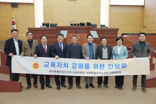 전북특별자치도의회 교육위원회(위원장 김명지)는 22일 도의회에서 제주특별자치도의회 교육위원회 위원 및 교육청 관계자들과 간담회를 갖고 특별자치도 출범에 따른 교육자치 실현 방안 및 상호교류 활성화 방안 마련을 위해 노력하기로 했다.