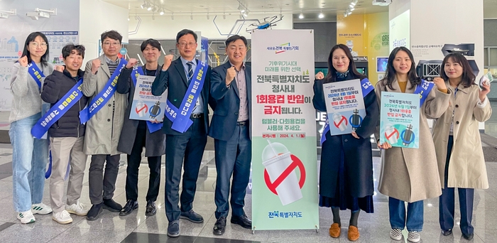 전북자치도가 청사 전 직원과 방문객을 대상으로 4월 1일부터 도청사내 1회용컵 반입을 금지한다.
