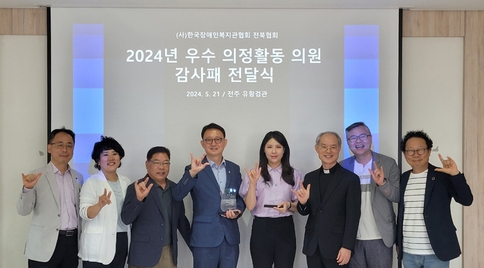 전북자치의회 김성수(고창1) 의원과 김슬지(비례대표) 의원이 21일 (사)한국장애인복지관협회 전북자치도협회루부터 감사패를 수상했다.