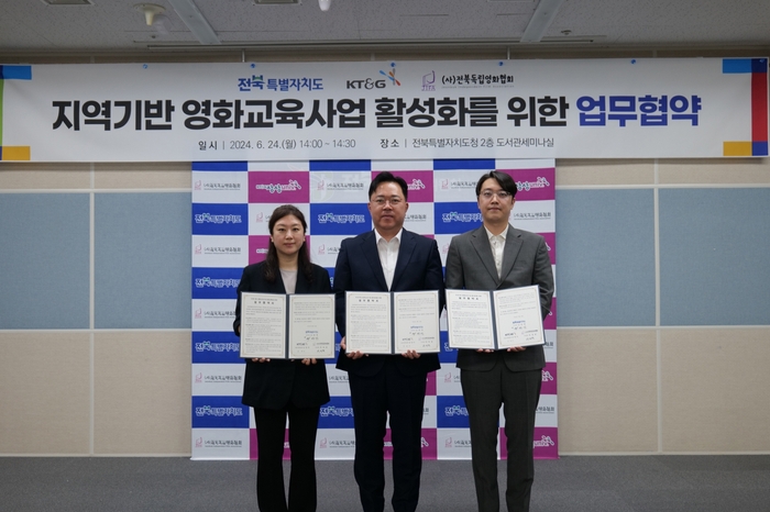 전북자치도는 24일 도청에서 KT&G 상상유니브(전북운영사무국) 및 (사)전북독립영화협회와 업무협약을 체결했다고 밝혔다.