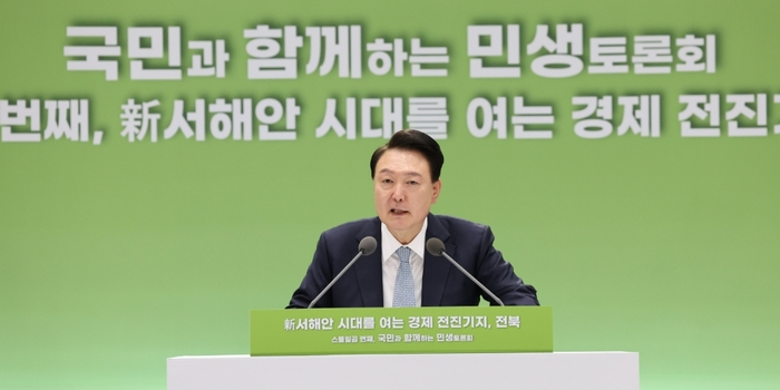 윤석열 대통령은 18일 "완주 수소특화 국가산업단지조성을 적극 추진하고 '수소 상용차 신뢰성 검증센터' 등 인프라를 확충해 수소상용차 혁신 생태계를 만들겠다"고 약속했다. 윤 대통령은 이날 정읍시 소재 JB그룹 아우름캠퍼스에서 27번째 '국민과 함께하는 민생토론회'를 주재하면서 "전북을 대한민국 첨단산업의 교두보로 만들겠다"며 이같이 밝혔다. 윤 대통령은 이어 "새만금 이차전지 특화산단의 혁신을 이끌 석·박사급 고급인력을 양성하고 전북 연구개발특구에 바이오융복합산업 테스트베드를 구축하겠다"고 말했다. 군산을 중심으로 무인잠수정 등 해양 무인장비 실증 시험을 지원하는 한편 김제 스마트팜 혁신밸리, 익산에는 국가식품클러스터 등 전북 내 농생명산업 인프라를 거론하며 전북을 농생명산업 클러스터로 키우겠다고 공약했다. 윤 대통령은 "김제·장수에 2만4천평 규모의 임대형 스마트팜을 조성해 청년들의 창업 도전을 지원하고 푸드테크 등 미래 유망 식품산업 육성을 위한 '국가식품클러스터 2단계' 조성과 농생명지구 지정도 조속히 추진하겠다"며 "전북 농업에 민간투자가 확대되도록 지원하겠다"고 밝혔다. 윤 대통령은 또 “새만금에는 농업용수 공급사업을 추진해 스마트팜 등 첨단농업 시설이 입주하도록 지원하겠다”고 강조했다. 윤 대통령은 "전북이 전주 한옥마을, 남원 공예 등 우수한 문화관광 자원을 보유하고 있는 만큼 지역특색을 살린 문화콘텐츠를 육성하기 위해 내년까지 전주, 군산, 남원 지역을 '문화산업진흥지구'로 지정하겠다"며 "문화콘텐츠 벤처기업을 육성하는 '전북 K-문화콘텐츠 지원센터' 건립도 지원하겠다"고 약속했다. 유소년 전용 훈련시설인 스포츠콤플렉스 건립과 전북권 통합재활병원도 2026년까지 완공되도록 하겠다고 덧붙였다. 윤 대통령은 "지난해 12월 제정된 '전북특별자치도법'이 내실 있게 운영되도록 법안 개정을 추진해 '생명경제도시' 전북을 이루는 데 필요한 재정지원을 확대하고 지방소멸에 대응하기 위한 과제들을 특별법에 반영하겠다"고 밝혔다. 윤 대통령은 최근 집중호우 피해와 관련, 도민들에게 위로를 전하며 복구 지원을 위해 최대한 노력하겠다고 언급했다. 한편 이날 전북민생토론회는 '신(新) 서해안 시대를 여는 경제 전진 기지'라는 주제로 열렸는데 토론회에는 전북도민을 비롯해 첨단산업·농업 분야 기업인, 연구자, 농민, 청년 창업인, 전북 지방시대위원회 위원 등 80여 명이 참석했다. 정부에서는 우동기 지방시대위원회 위원장, 송미령 농림축산식품부 장관, 김경안 새만금개발청 청장 등이, 지역에서는 김관영 도지사 등, 대통령실에서는 성태윤 정책실장 등이 참석했다. /최준호 기자