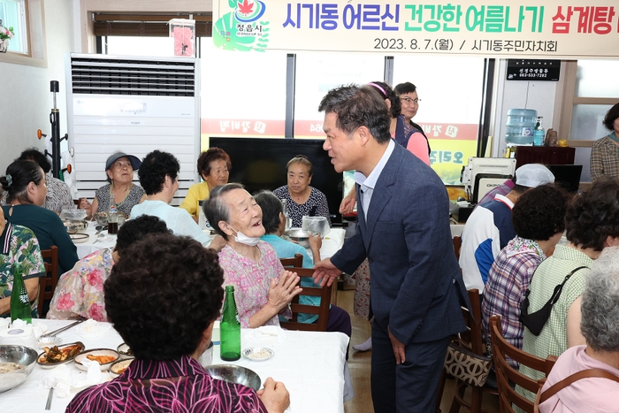 긴 장마가 끝나고 연일 계속되는 무더위 가운데 정성과 사랑을 담아 삼계탕을 대접하고 관내 어르신의 건강과 안부를 확인했다.