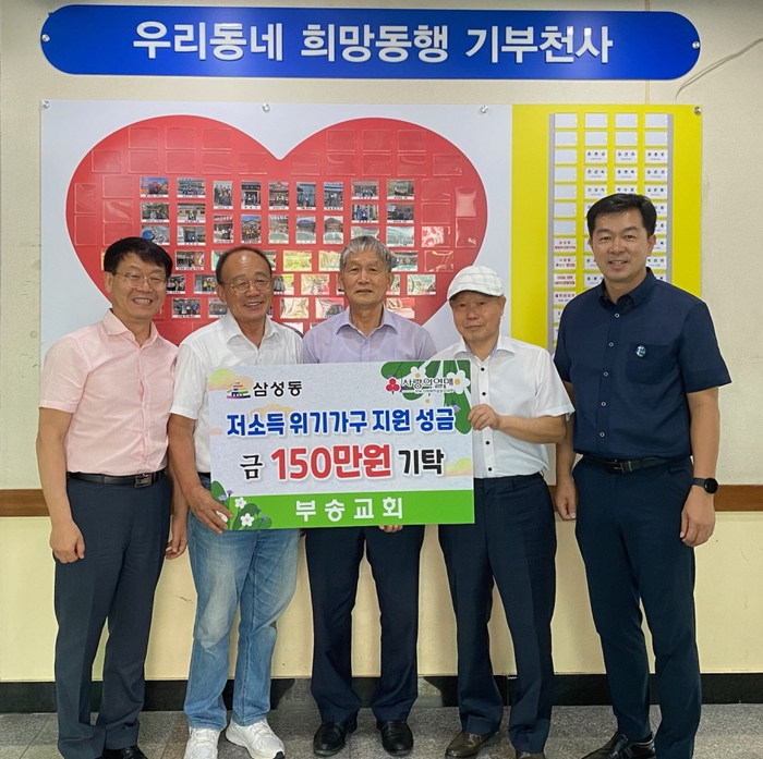 익산 부송교회(목사 신철환)는 지난 14일 삼성동행정복지센터를 방문해 집중호우 피해를 입은 저소득 가구 등 지역 이웃을 위해 성금 150만 원을 기탁했다.