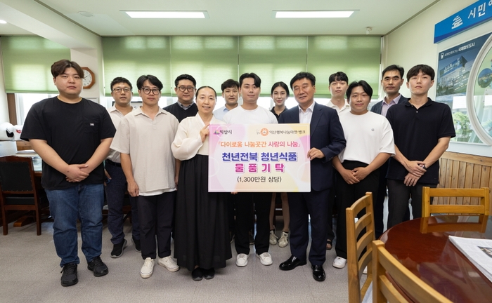 천년전북 청년식품(대표 구경한)은 지난 17일 익산시청을 방문해 나눔곳간 이용자들을 위해 1,300만원 상당의 식품을 기탁했다.