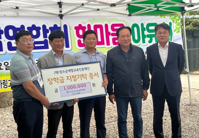 (재)장수군애향교육진흥재단(이사장 최훈식)은 장수군을 방문한 (사)오산시호남연합회(회장 조봉열)로부터 인재육성 장학금 100만원을 기탁받았다고 밝혔다.