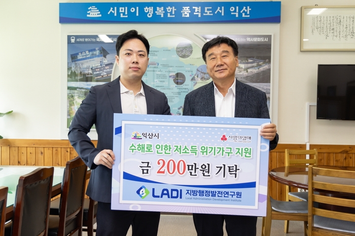 지방행정발전연구원 전북본부(본부장 나용수)는 22일 수해로 인한 저소득 주민들을 위해 성금 200만원을 기탁했다.