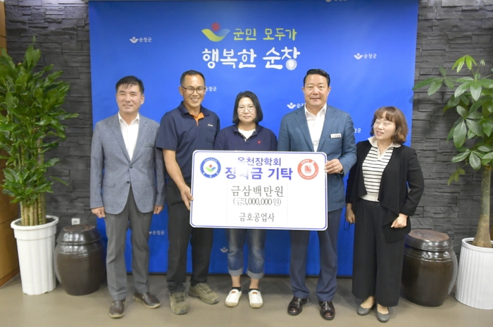 순창군은 지난 7일 금호공업사(대표 박금순)가 순창군청을 찾아 지역인재 양성에 써달라며 순창군옥천장학회(이사장 순창군수 최영일)에 장학금 300만원을 기탁했다고 밝혔다.